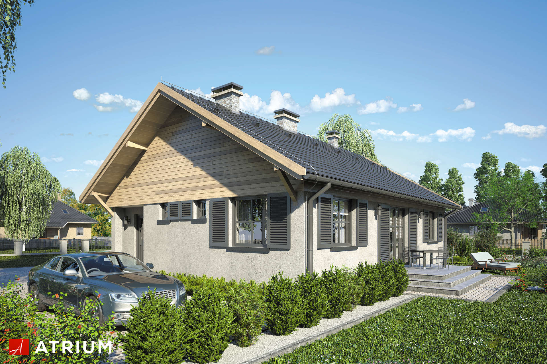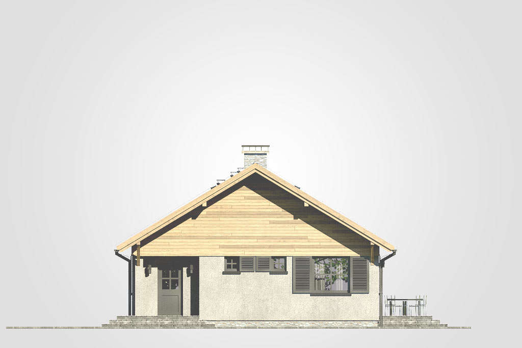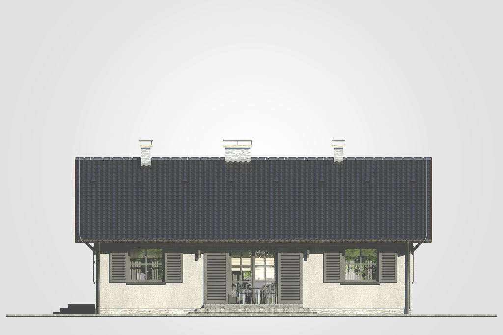 Projekt domu Ametyst to propozycja niewielkiego, parterowego budynku jednorodzinnego, który łączy w sobie prostotę architektoniczną, funkcjonalność oraz przyjazny, ponadczasowy wygląd. Został zaprojektowany z myślą o rodzinie, która oczekuje wygodnej i logicznie zorganizowanej przestrzeni do codziennego życia, przy jednoczesnym zachowaniu umiarkowanej powierzchni i racjonalnych kosztów realizacji. Dom oparty na planie prostokąta wyróżnia się zwartą bryłą, co wpływa zarówno na estetykę, jak i na ekonomię budowy oraz późniejszej eksploatacji. Architektura budynku jest klasyczna i harmonijna, a jej głównym elementem jest dach dwuspadowy, który nadaje całości tradycyjny, dobrze znany charakter. Tego typu forma sprawia, że dom łatwo wpisuje się w różnorodne otoczenie, zarówno w zabudowie podmiejskiej, jak i na terenach wiejskich. Prosta bryła została uzupełniona o subtelne detale, które podkreślają jej przytulność i sprawiają, że budynek nie jest monotonny, lecz zachowuje elegancki, wyważony wygląd. Dodatkowym atutem jest odkryty taras usytuowany z boku domu, który stanowi naturalne przedłużenie przestrzeni mieszkalnej i umożliwia korzystanie z uroków ogrodu w bezpośrednim sąsiedztwie wnętrza. Wnętrze domu zostało zaprojektowane w sposób bardzo przemyślany, z wyraźnym naciskiem na wygodę użytkowania i maksymalne wykorzystanie dostępnej powierzchni. Do budynku prowadzi przedsionek, który pełni funkcję ochronną przed utratą ciepła, a jednocześnie stanowi praktyczne miejsce do przechowywania odzieży wierzchniej. Dalej znajduje się przestrzeń komunikacyjna, która w czytelny sposób rozprowadza ruch po całym domu, zapewniając łatwy dostęp do wszystkich pomieszczeń. Centralnym punktem domu jest strefa dzienna, w której wyraźnie zaznaczono podział na część wypoczynkową oraz kuchenną z jadalnią. Ich wzajemne usytuowanie sprzyja codziennemu funkcjonowaniu, umożliwiając zarówno wspólne spędzanie czasu, jak i wygodne przygotowywanie posiłków. Szczególną rolę odgrywa kominek umieszczony w centralnej części budynku, który nie tylko podnosi walory estetyczne wnętrza, ale również symbolicznie dzieli przestrzeń, tworząc przytulną atmosferę i wyraźne strefy użytkowe. Część prywatna obejmuje trzy pokoje, które mogą pełnić funkcję sypialni, pokoi dziecięcych lub gabinetu do pracy, w zależności od potrzeb mieszkańców. Ich rozmieszczenie zapewnia odpowiedni poziom intymności, a jednocześnie pozwala na łatwą komunikację z pozostałymi częściami domu. Uzupełnieniem tej strefy jest duża, jasna łazienka, która gwarantuje komfort codziennego użytkowania, a także dodatkowe pomieszczenie sanitarne, zwiększające wygodę mieszkańców i gości. W projekcie przewidziano również kotłownię, która pełni funkcję zaplecza technicznego i pozwala na umieszczenie instalacji grzewczych, co sprzyja utrzymaniu porządku w części mieszkalnej. Całość układu została opracowana w sposób racjonalny, bez zbędnych powierzchni komunikacyjnych, dzięki czemu każdy metr kwadratowy domu jest efektywnie wykorzystany. Ametyst to dom, który doskonale sprawdzi się jako wygodne miejsce do życia dla czteroosobowej rodziny, oferując wszystkie niezbędne funkcje w kompaktowej i estetycznej formie. Jego architektura oparta na prostych rozwiązaniach, funkcjonalny układ wnętrz oraz przytulny charakter sprawiają, że jest to projekt łączący tradycję z nowoczesnym podejściem do organizacji przestrzeni, zapewniając komfort, praktyczność i ponadczasowy wygląd.