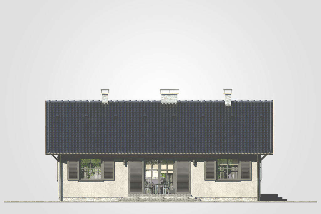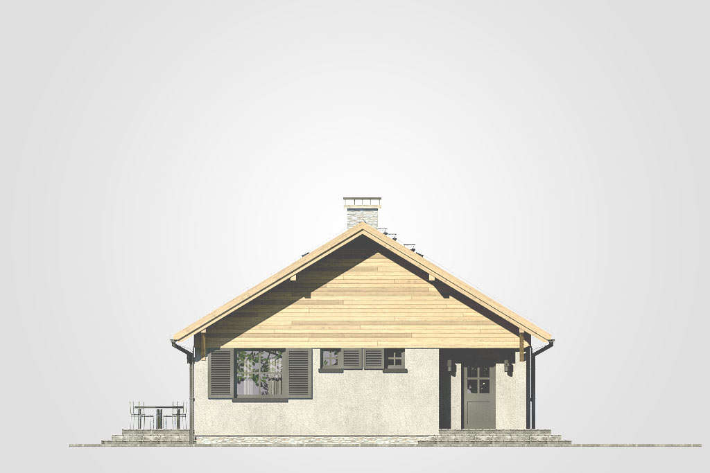 Projekt domu Ametyst to propozycja niewielkiego, parterowego budynku jednorodzinnego, który łączy w sobie prostotę architektoniczną, funkcjonalność oraz przyjazny, ponadczasowy wygląd. Został zaprojektowany z myślą o rodzinie, która oczekuje wygodnej i logicznie zorganizowanej przestrzeni do codziennego życia, przy jednoczesnym zachowaniu umiarkowanej powierzchni i racjonalnych kosztów realizacji. Dom oparty na planie prostokąta wyróżnia się zwartą bryłą, co wpływa zarówno na estetykę, jak i na ekonomię budowy oraz późniejszej eksploatacji. Architektura budynku jest klasyczna i harmonijna, a jej głównym elementem jest dach dwuspadowy, który nadaje całości tradycyjny, dobrze znany charakter. Tego typu forma sprawia, że dom łatwo wpisuje się w różnorodne otoczenie, zarówno w zabudowie podmiejskiej, jak i na terenach wiejskich. Prosta bryła została uzupełniona o subtelne detale, które podkreślają jej przytulność i sprawiają, że budynek nie jest monotonny, lecz zachowuje elegancki, wyważony wygląd. Dodatkowym atutem jest odkryty taras usytuowany z boku domu, który stanowi naturalne przedłużenie przestrzeni mieszkalnej i umożliwia korzystanie z uroków ogrodu w bezpośrednim sąsiedztwie wnętrza. Wnętrze domu zostało zaprojektowane w sposób bardzo przemyślany, z wyraźnym naciskiem na wygodę użytkowania i maksymalne wykorzystanie dostępnej powierzchni. Do budynku prowadzi przedsionek, który pełni funkcję ochronną przed utratą ciepła, a jednocześnie stanowi praktyczne miejsce do przechowywania odzieży wierzchniej. Dalej znajduje się przestrzeń komunikacyjna, która w czytelny sposób rozprowadza ruch po całym domu, zapewniając łatwy dostęp do wszystkich pomieszczeń. Centralnym punktem domu jest strefa dzienna, w której wyraźnie zaznaczono podział na część wypoczynkową oraz kuchenną z jadalnią. Ich wzajemne usytuowanie sprzyja codziennemu funkcjonowaniu, umożliwiając zarówno wspólne spędzanie czasu, jak i wygodne przygotowywanie posiłków. Szczególną rolę odgrywa kominek umieszczony w centralnej części budynku, który nie tylko podnosi walory estetyczne wnętrza, ale również symbolicznie dzieli przestrzeń, tworząc przytulną atmosferę i wyraźne strefy użytkowe. Część prywatna obejmuje trzy pokoje, które mogą pełnić funkcję sypialni, pokoi dziecięcych lub gabinetu do pracy, w zależności od potrzeb mieszkańców. Ich rozmieszczenie zapewnia odpowiedni poziom intymności, a jednocześnie pozwala na łatwą komunikację z pozostałymi częściami domu. Uzupełnieniem tej strefy jest duża, jasna łazienka, która gwarantuje komfort codziennego użytkowania, a także dodatkowe pomieszczenie sanitarne, zwiększające wygodę mieszkańców i gości. W projekcie przewidziano również kotłownię, która pełni funkcję zaplecza technicznego i pozwala na umieszczenie instalacji grzewczych, co sprzyja utrzymaniu porządku w części mieszkalnej. Całość układu została opracowana w sposób racjonalny, bez zbędnych powierzchni komunikacyjnych, dzięki czemu każdy metr kwadratowy domu jest efektywnie wykorzystany. Ametyst to dom, który doskonale sprawdzi się jako wygodne miejsce do życia dla czteroosobowej rodziny, oferując wszystkie niezbędne funkcje w kompaktowej i estetycznej formie. Jego architektura oparta na prostych rozwiązaniach, funkcjonalny układ wnętrz oraz przytulny charakter sprawiają, że jest to projekt łączący tradycję z nowoczesnym podejściem do organizacji przestrzeni, zapewniając komfort, praktyczność i ponadczasowy wygląd.