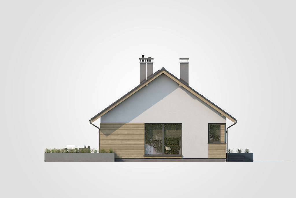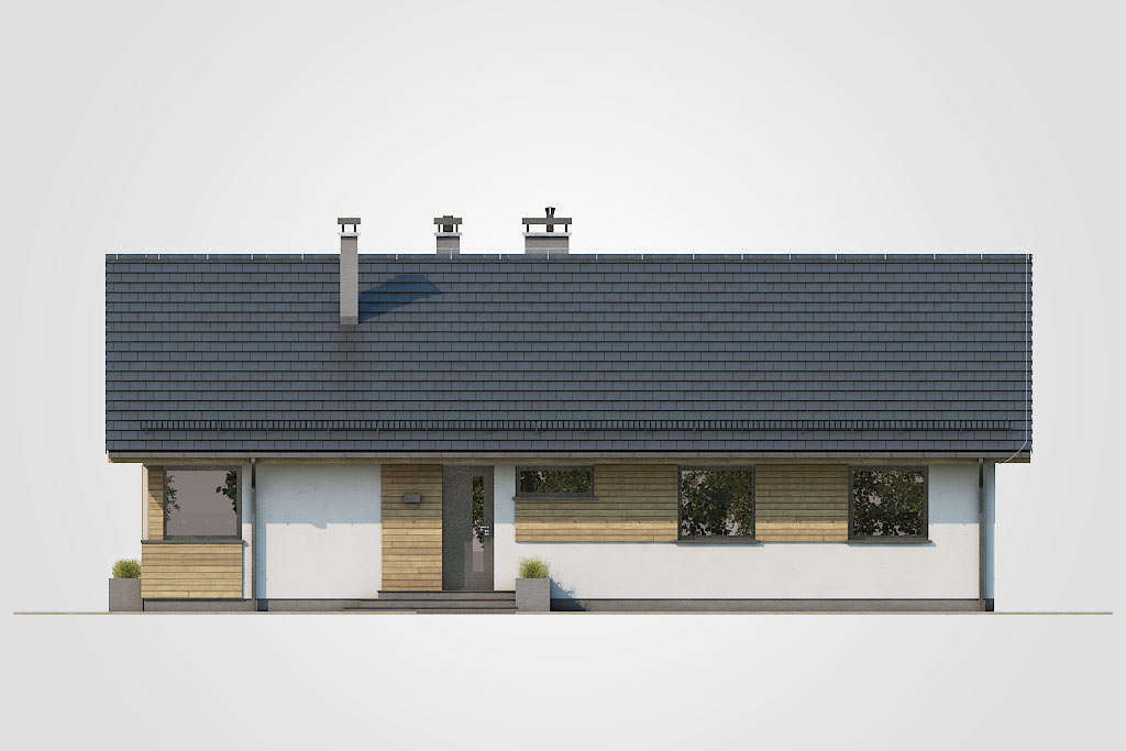 Parterowy dom jednorodzinny w technologii szkieletowej, z czterema sypialniami