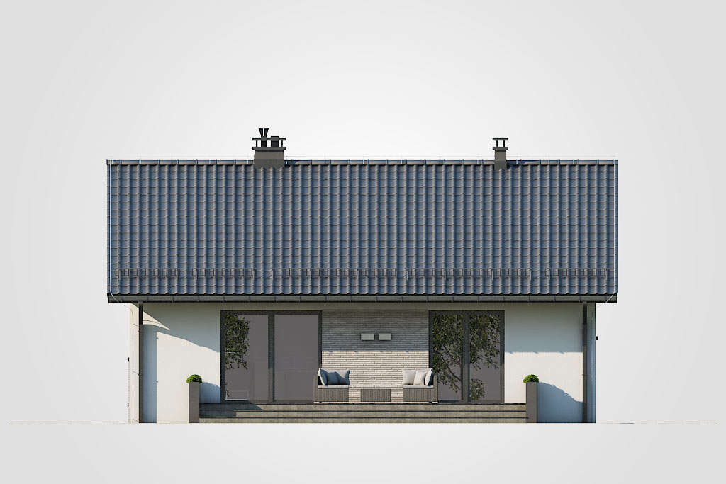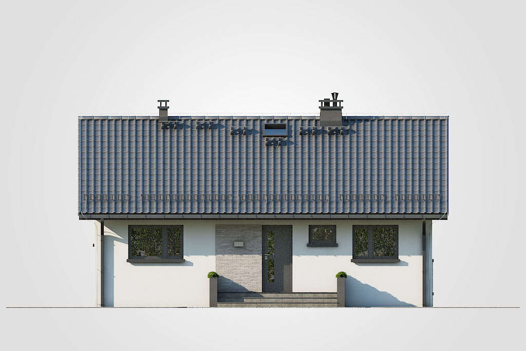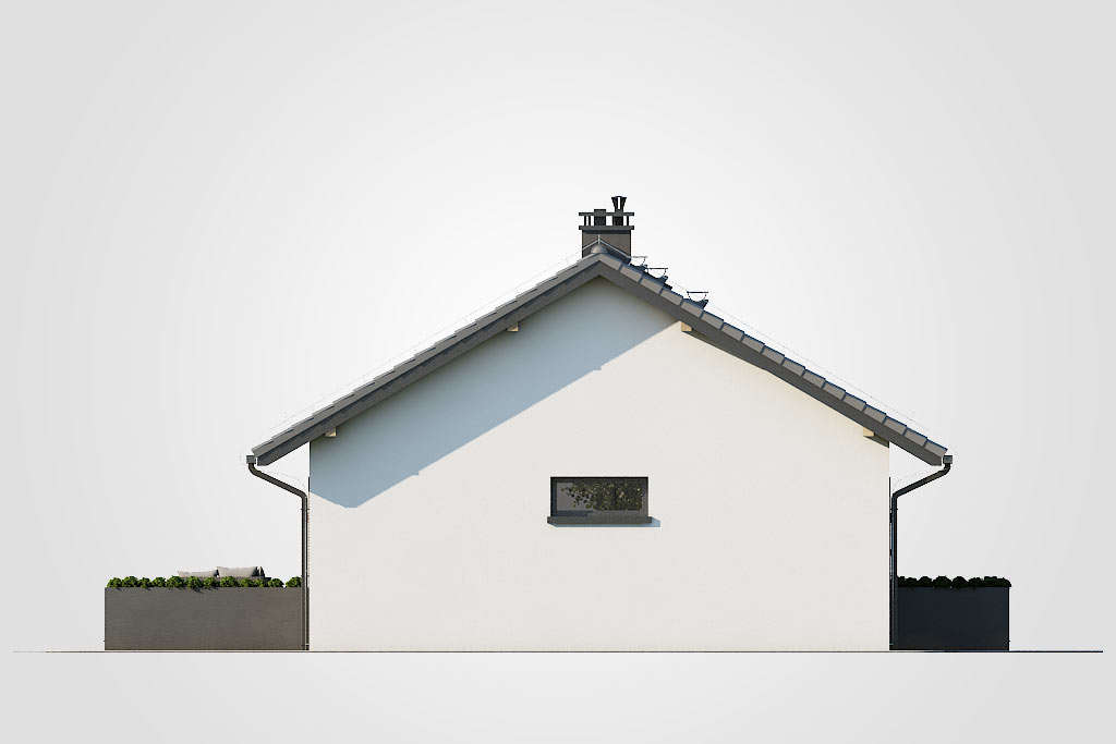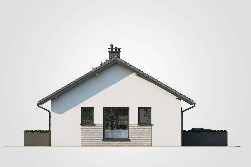Kolejna, prosta parterówka z rodziny Ronaldo. Zamykany przedsionek to nie tylko praktyczna przestrzeń do przechowywania, ale także ochrona wnętrza domu przed wiatrem i zimnem. Jednak w tym projekcie uwagę przyciąga zwłaszcza główna sypialnia, której przestrzeń podzielono niewielką ścianką. Schowane za nią szafy pozwolą na utrzymanie porządku i przejrzystego wnętrza. Z tyłu domu zaprojektowano komfortowy taras, na którym można znaleźć chwilę wytchnienia w bliskości z naturą.